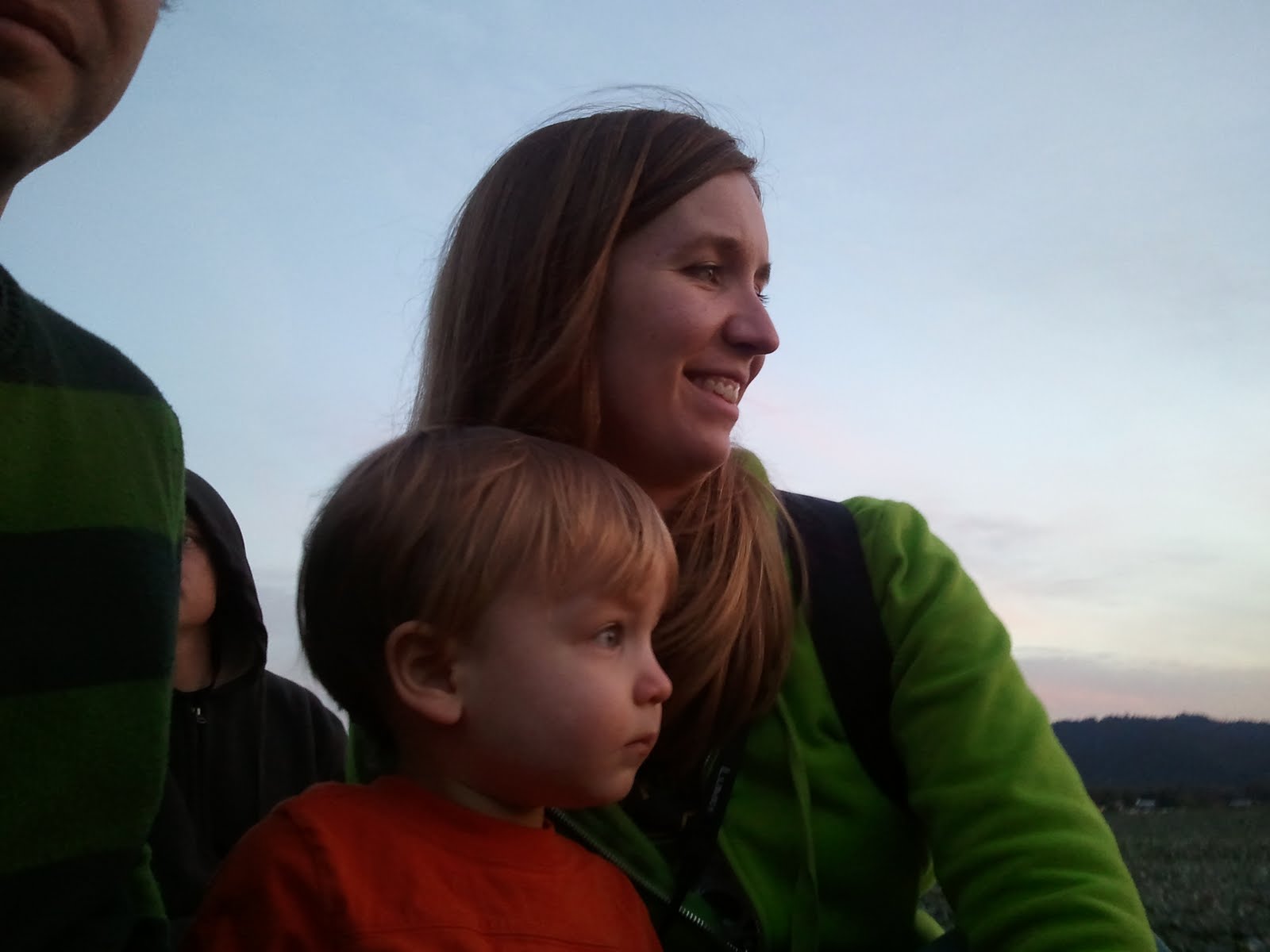 So we went to the Christmas tree lighting in downtown Portland the day after Thanksgiving (you know, the one where the FBI busted a potential terrorist). We got there pretty early and there was already a huge crowd of people. So we got a pretty good spot across the street from the square where the tree was but it was hard for Mitch to stay interested for an hour and a half while we were waiting! (they were a little late lighting it).
